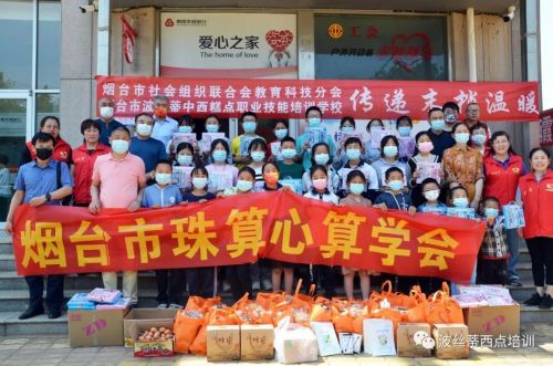 28日上午,煙臺波絲蒂中西糕點職業(yè)技能培訓(xùn)學(xué)校校長兼煙臺市社會組織聯(lián)合會教育科技分會會長陳紅林(后排右四),同煙臺市面點行業(yè)老專家陳憲國(后排右五)、中飯協(xié)膠東促進委研究院秘書長王惠忠(后排左五)、煙臺珠算協(xié)會會長兼煙臺市社會組織聯(lián)合會教育科技分會副會長徐功才(后排右三)、國醫(yī)姜氏中醫(yī)堂的姜玉雷大夫(后排左六)和王雪琴大夫(后排左七)、煙臺波絲蒂中西糕點職業(yè)技能培訓(xùn)學(xué)校創(chuàng)新創(chuàng)業(yè)培訓(xùn)部部長兼國際外聯(lián)部部長陳聰(后排右一)及外宣部部長王同艷(后排左四),從煙臺驅(qū)車來到棲霞看望孩子們。大家為孩子帶來面包、蛋糕、點心、雞蛋、學(xué)習(xí)用品等,表達了對孩子節(jié)日的祝福與關(guān)愛。