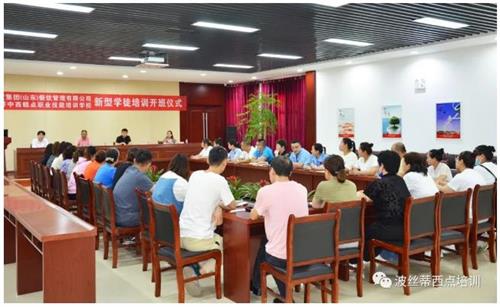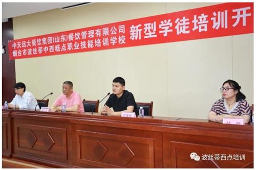 5月29日,煙臺市波絲蒂中西糕點職業技能培訓學校與中天遠大餐飲集團(山東)餐飲管理有限公司聯合開展的新型學徒制——西式面點培訓班舉行開班儀式。波絲蒂培訓學校校長陳紅林、優秀教師林萍,中天遠大餐飲集團(山東)餐飲管理有限公司行政人事部部長武建源、人事主管付珍及企業參加培訓的學員代表共同出席了開班儀式。