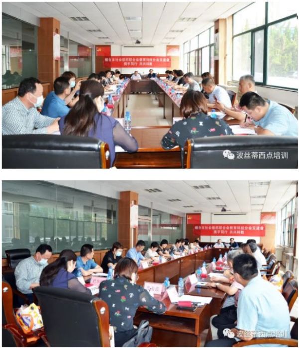交流會由煙臺市社會組織聯(lián)合會教育科技分會會長、波絲蒂職業(yè)培訓學校校長陳紅林主持,煙臺市委統(tǒng)戰(zhàn)部副部長、煙臺市社會主義學院副院長于忠杰,煙臺市政協(xié)副主席、九三學社煙臺主委秦松,煙臺市社會組織聯(lián)合會會長、煙臺市政協(xié)社法民宗委副主任朱春紅等領導出席了交流會,同時煙臺市教育科技領域的教育培訓學校、學會、研究機構的代表共同參加了交流會。