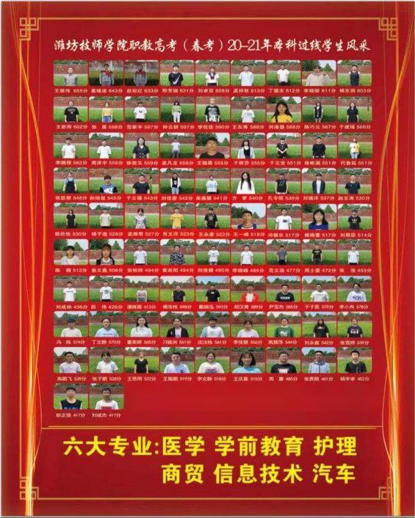 在2020和2021年的春季高考中,學(xué)院兩年共有201人參加春季高考統(tǒng)一考試,82人進(jìn)入本科線,本科升學(xué)率40.7%,其中汽車專業(yè)上線率78.2%,商貿(mào)專業(yè)上線率61.4%,醫(yī)藥專業(yè)上線率47.1%。10名同學(xué)高考成績?yōu)?00分以上,均超過本科分?jǐn)?shù)線100分以上。其中王銀偉高考成績655分,位居全省63名,超過本科線150分,創(chuàng)造了學(xué)院歷史上新的輝煌。這些學(xué)生都是當(dāng)年未考入高中,且底子薄、習(xí)慣差、學(xué)習(xí)意識淡薄的三年制學(xué)生,能夠取得如此優(yōu)異成績,實(shí)屬不易。我們在此表示祝賀!