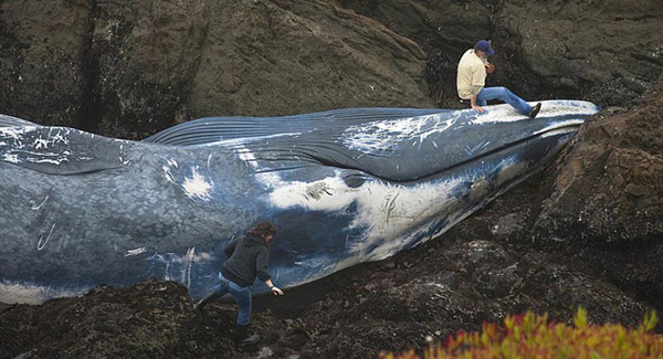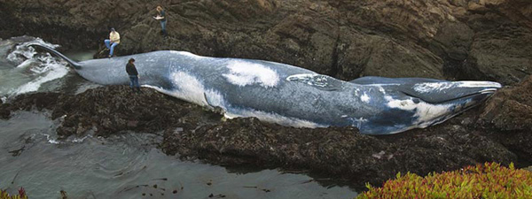 10月20日晚,人們在加州北部海岸多巖石的海灣發現了一頭體長21.3米的雌性巨型藍鯨的尸體。美國海洋暨大氣總署海洋漁業服務的野生動植物學家喬·科爾達羅表示,此前一艘海洋測量船報告在幾英里遠的地方撞上了一頭鯨魚,幾個小時后人們便在這里發現了這頭鯨魚。