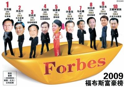 2009福布斯中國富豪榜單No. 1王傳福 396.0 比亞迪