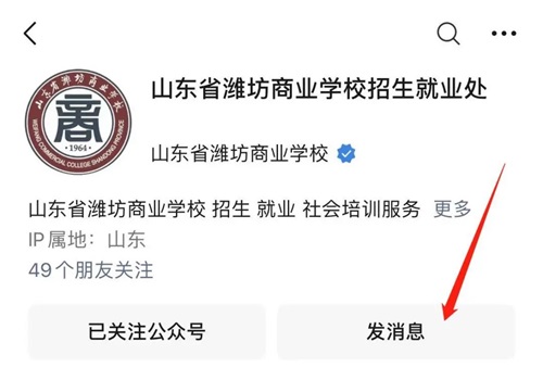 搜索“山東省濰坊商業學校招生就業處”公眾號,點擊進入