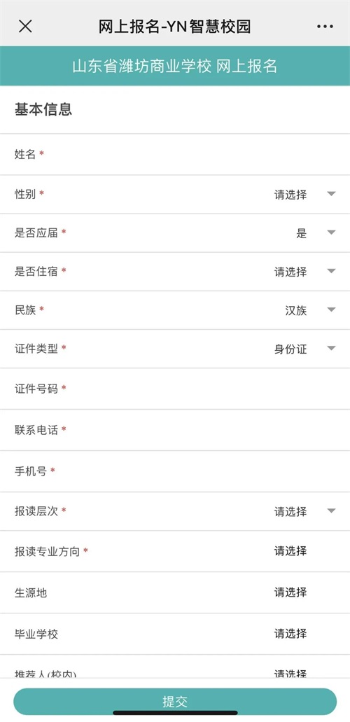 第4步:進入報名界面后,認真填寫個人信息、成績(中考前報名不需要填寫),填寫完畢后點擊提交。