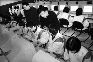 學(xué)生在老師的指導(dǎo)下進(jìn)行網(wǎng)上報(bào)名 記者 鄭濤 攝