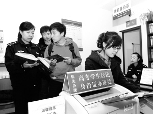 | 青島公安戶籍部門開辟考生身份證辦理“綠色通道”,要求在5個工作日內(nèi)優(yōu)先辦理,為考生報名提供便利。新華社發(fā) |
