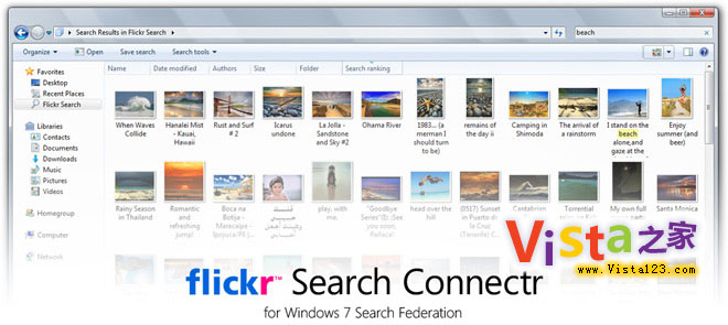 Windows 7的桌面搜索則整合了聯合搜索的功能以搜索本地計算機之外的東西。現在你可以通過本地計算機搜索網絡上的東西。該技術基于OpenSearch和RSS格式。由于其基于的標準是開放性的,用戶可以輕松打造自己的個性搜索工具。