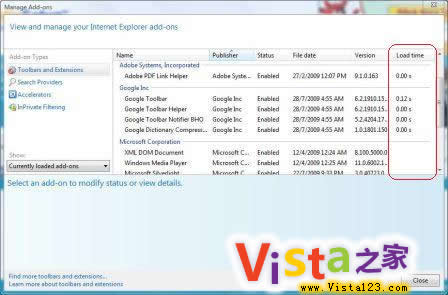 如果用戶讓IE8更快,用戶要關閉讓它變慢的插件。 工具——插件管理 檢查每一個插件的加載時間。 用戶可以自己選擇去掉那些用戶不需要的插件以提高讀取速度。