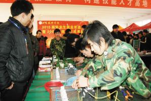 技校生現(xiàn)場(chǎng)技能展示吸引了眾多用人單位的眼球。22日,山東技師學(xué)院舉辦的2010屆畢業(yè)生就業(yè)雙選會(huì)上演了一場(chǎng)技校生爭(zhēng)奪戰(zhàn)。270多家省內(nèi)外用人單位攜帶7500多個(gè)單位參加雙選會(huì),爭(zhēng)奪3000多名明年夏季的技校畢業(yè)生。記者 朱彩玲 攝影報(bào)道