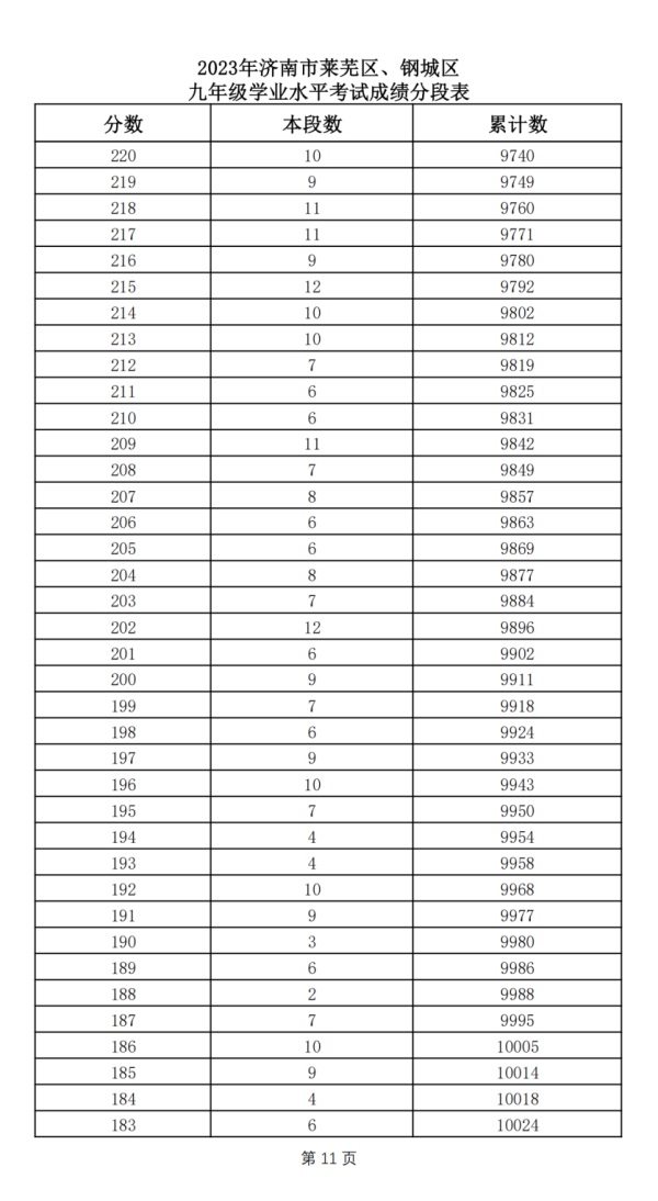 山東技校網 >>  >>  2023年濟南市萊蕪區、鋼城區 九年級學業水平考試成績分段表
