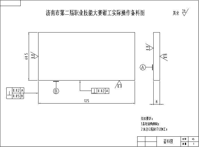 根據備料圖紙準備考件(每考生1件,材料45#或Q235 -A)。按參賽人數準備。