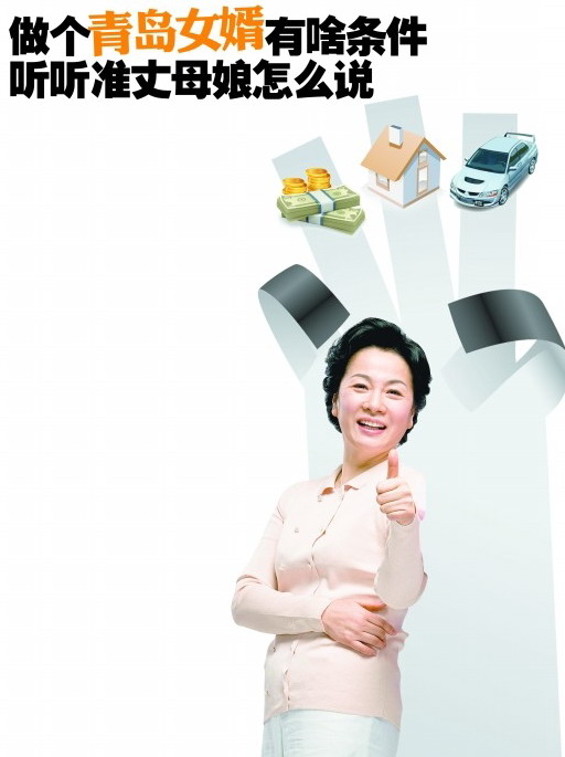 對女婿的要求:好是青島人,因為本地人的人品好壞,我一打聽一個準;外地人不好打聽,摸不準,萬一有個閃失,女兒的幸福就毀了。依我看,房子和車一樣也不能少。這也是小伙子能力的體現,只有條件好了,我女兒嫁過去才能生活幸福,不然,我真不放心。
