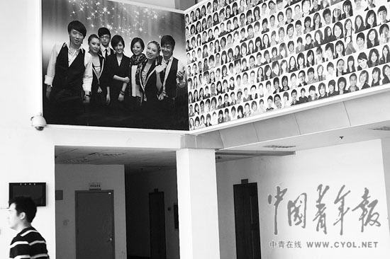 四川音樂學院通俗音樂學院的宣傳墻,上面有就讀于該院的選秀明星。記者王鑫昕攝