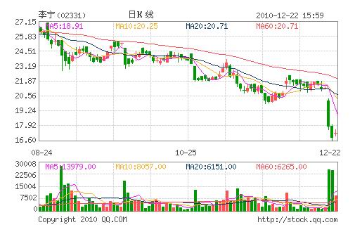 消息一出便震動二級市場。本周前兩個交易日,李寧公司遭遇大幅殺跌,累計跌幅達21.88%,市值縮水48.96億元。