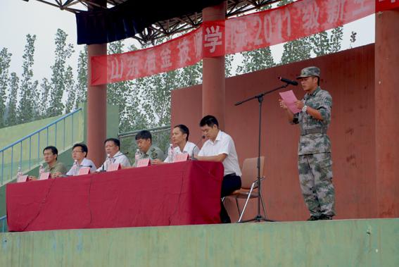 會上,孫院長做了重要講話。他首先代表學院對2011級新生的到來表示熱烈的歡迎和衷心的祝賀!向應邀前來指導軍訓工作的中國人民解放軍濟南軍區某部的官兵們表示熱烈的歡迎和衷心的感謝!向辛勤工作的班主任老師們表示崇高的敬意!在講話中,孫院長強調,軍事訓練是入學后的第一課,是新同學新校園生活的開始,對于他們增強國防意識,強化紀律觀念,歷練意志品質,形成良好的行為規范和生活習慣,意義重大。他代表學院軍訓領導小組對此次軍訓工作的全體教官、師生提出了兩點要求:一是要從加強我國國防力量建設的需要和培養德智體全面發展的社會主義事業建設者和接班人的需要的高度,充分認識到軍訓的重要性;二是要堅決貫徹嚴格要求、嚴格訓練、嚴格管理的“三嚴”方針,保質保量完成軍訓任務。