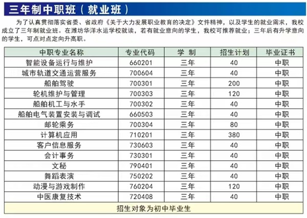七、濰坊華洋水運(yùn)學(xué)校招生計(jì)劃
