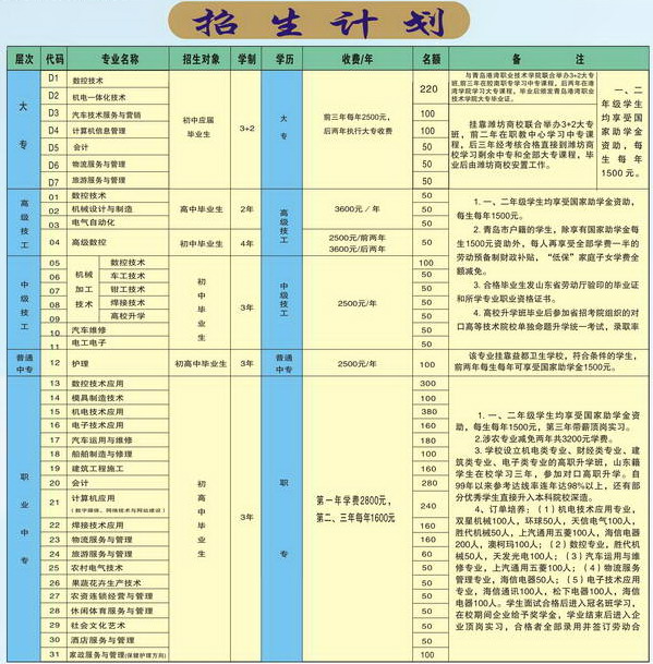 您的位置:山東技校網 >> 青島技校網 >> 膠南職教中心2012年招生簡章