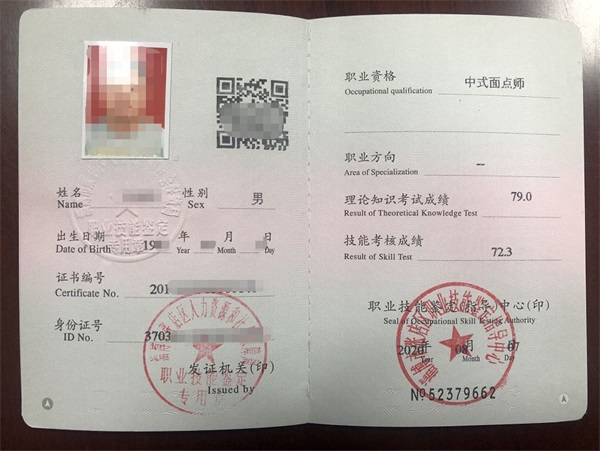 職業資格證書(中式烹調師、西點師、面點師中級、高級、技師)