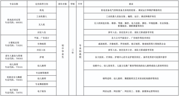 5、學生畢業時,頒發國家承認學歷的中專畢業證書,升入大專及本科院校的獲得大專或本科畢業證書及中高級職業資格證書。獲得大專以上學歷的學生可參加公務員、事業編招考。大學期間參軍入伍者部隊優先錄取,并由政府部門退還大學期間所有學費,大專生退伍的可免試上本科。