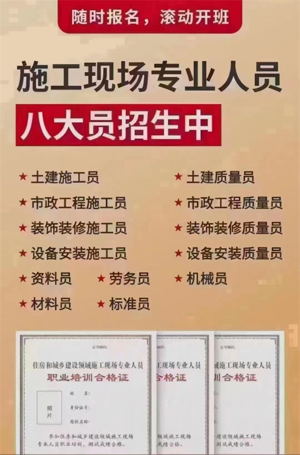 八大員證書項目各地市住建部門八大員專業(yè)報名、培訓、鑒定考試,信息咨詢一對一服務,解答學員問題。
