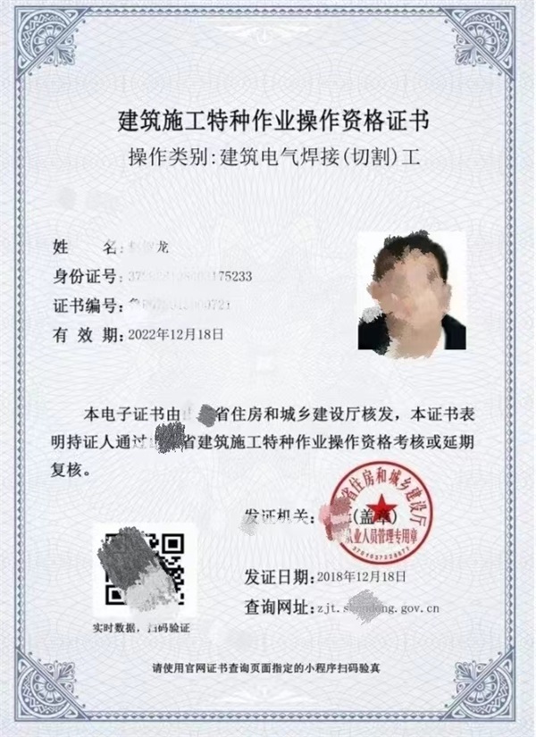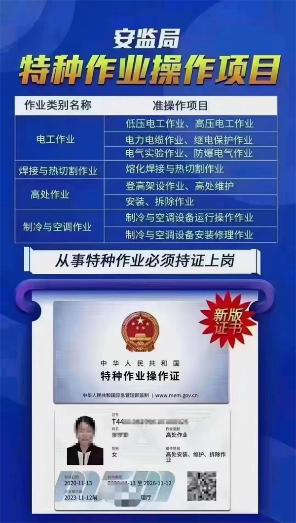 (4)證書鑒定部門:應急局(原安監(jiān)局)特種作業(yè)電子版卡操作證,質監(jiān)局特種作業(yè)操作證(大綠本)不含證書鑒定費。