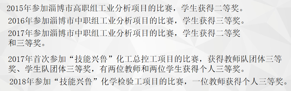 本著以賽促教、以賽促學(xué)的原則,淄博市技師學(xué)院--生物制藥與化工系積極參加市級(jí)和省級(jí)的各項(xiàng)比賽,取得了不錯(cuò)的成績。