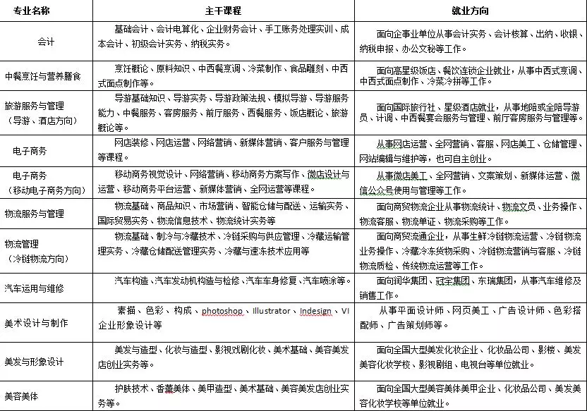 升學渠道暢。學校與相關企業聯合舉辦春季高考班,對有升學意向的學生進行專門培養;與國外院校合作,為有意到國外深造的學生提供幫助。普通中專完成學業后可通過對口單獨招生、春季高考、夏季高考等形式升入本、?圃盒I钤,三二連讀學生完成?茖W業后可通過專升本考試升入本科院校深造。