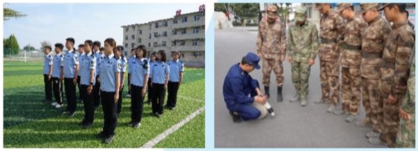 準軍事化管理是學校特色教育管理的重要組成部分,是學生學知識、強技能、抓養成、促升學的有力保障。學校聘請優秀的退伍軍人,對學生一日常規進行全程的模塊化訓練與管理,要求“著裝規范統一,紀律要求統一、常規標準統一、內務格式統一、考核評價統一”。學生將“學習軍人品質,完善自我形象”內化為一種自覺的行為,學生的軍人氣質更加凸顯,學生的自我管理水平進一步提高。