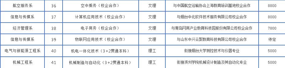 煙臺工程職業技術學院三年制高職專業介紹