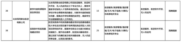 在百度中搜索“教育部協同育人”可進入教育部協同育人網址http://www.moe.gov.cn/s78/A08/A08_gggs/A08_sjhj/201805/t20180503_334906.html,在該網頁中下載附件(2018年第一批產學合作協同育人項目簡介)文件后,可在教育部此文件中第38名企業位置查找到“北京民用聯合航空有限公司”的審批項目(航空領域排名第二)。同時在此鄭重提醒各位考生及家長,在教育部該網頁查詢不到的校企合作企業方,均屬于“未參加項目審批企業”或“未能通過審批項目”,此類項目望考生及家長慎重報考。
