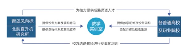 青島風(fēng)向標航空注重產(chǎn)教融合,探索與高等院校的科研合作,先后與北京航空航天大學(xué)直升機研究所、中國石油大學(xué)海洋信息空間學(xué)院建立專家工作站,支持無人機專業(yè)校企合作和新技術(shù)開發(fā)。為學(xué)校制定無人機實訓(xùn)室建設(shè)方案,將無人機實訓(xùn)與社會發(fā)展需求對接,實現(xiàn)學(xué)生動手實踐能力、開發(fā)能力和就業(yè)能力的提升。