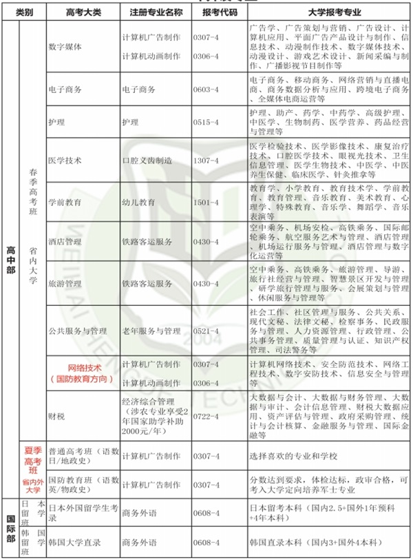 升學(xué)培養(yǎng)方向:夏考省內(nèi)、外大學(xué)