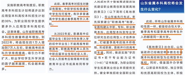 從2022年(2019年入學的高中段學生)起,山東省開始實施“職教高考”制度,采取“文化素質+職業技能”考試招生辦法,職業技能考試成績在錄取中所占權重原則上不低于50%。即:從2022年起“山東春季高考”將升級為“山東職教高考”!